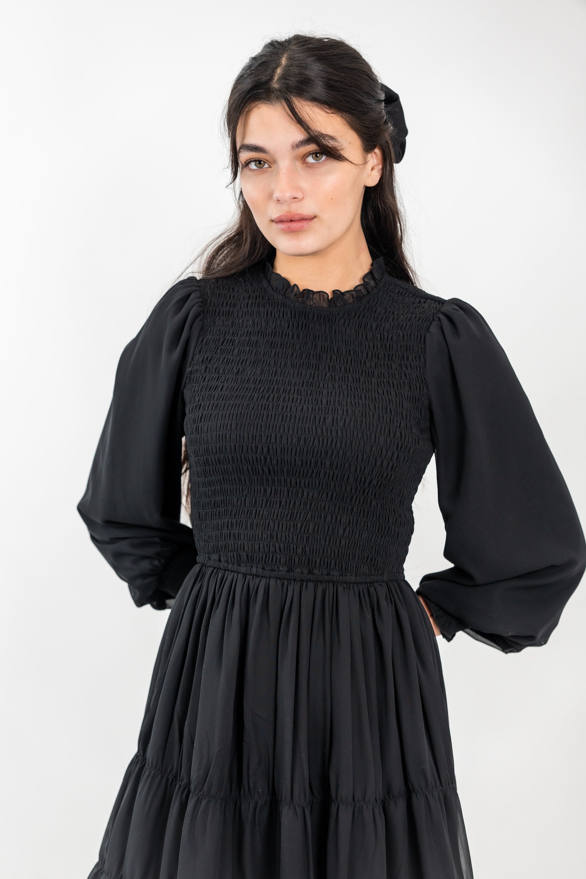 Elevate your formal attire with this exquisite dress, featuring a stretched ruching bodice that molds to every figure flawlessly. Crafted from luxurious chiffon, its graceful movement will make this piece your ultimate go-to for any dressy occasion.