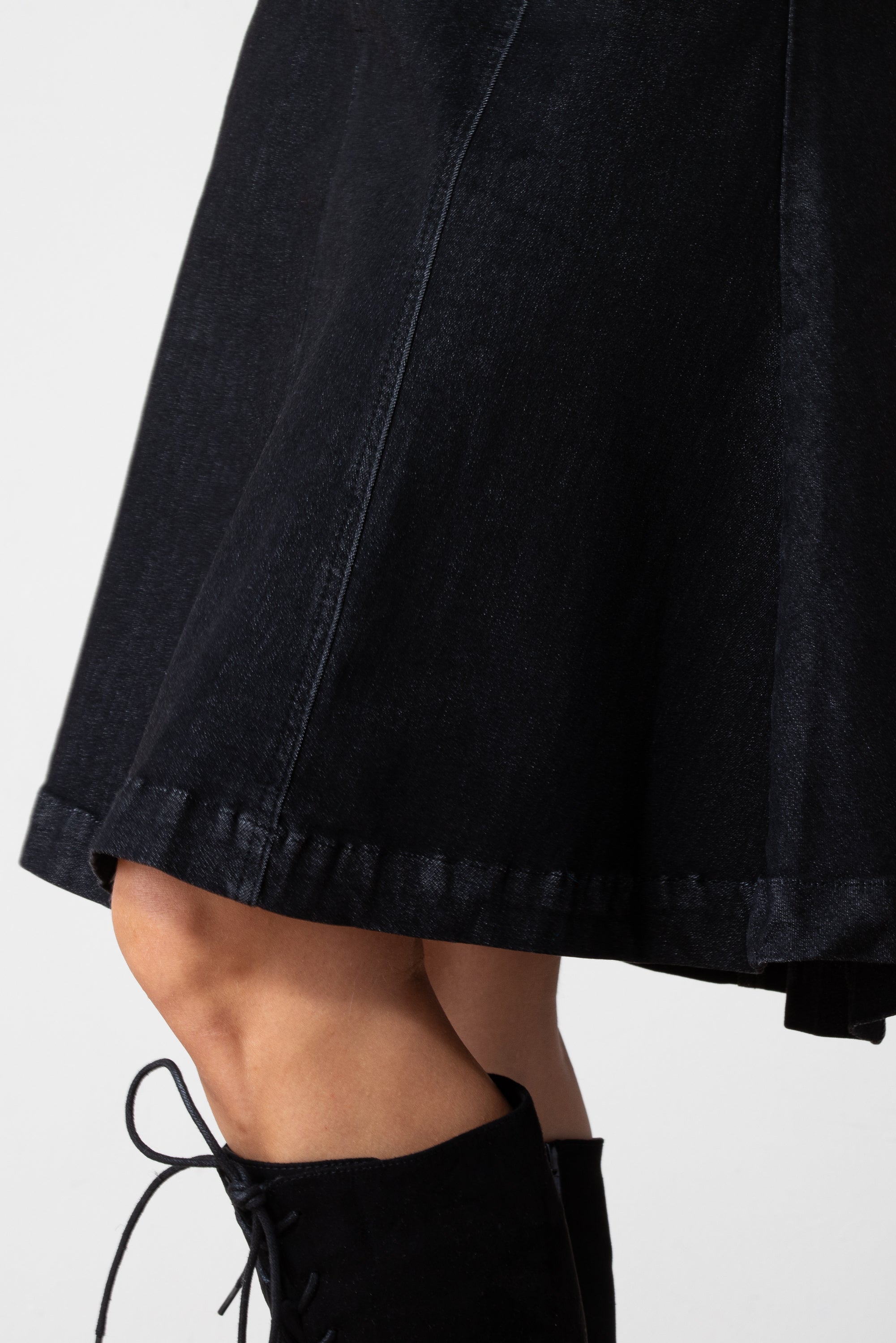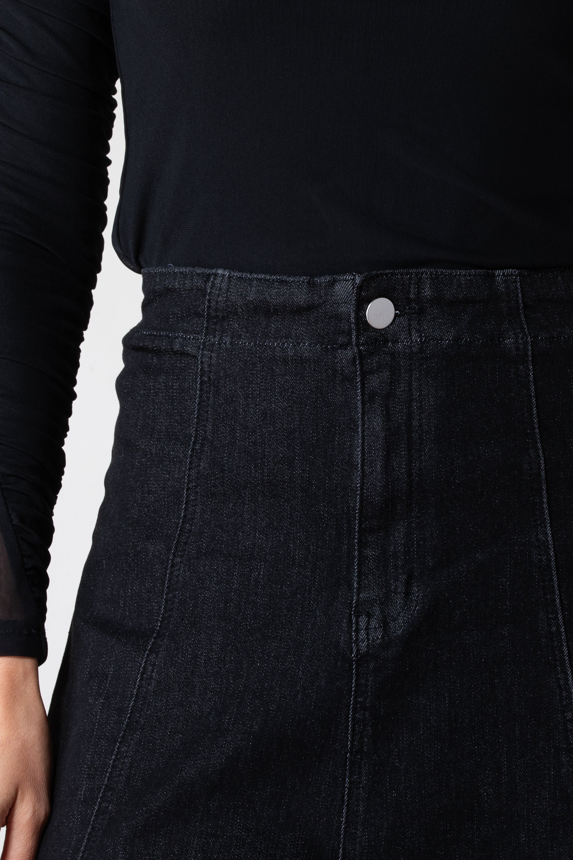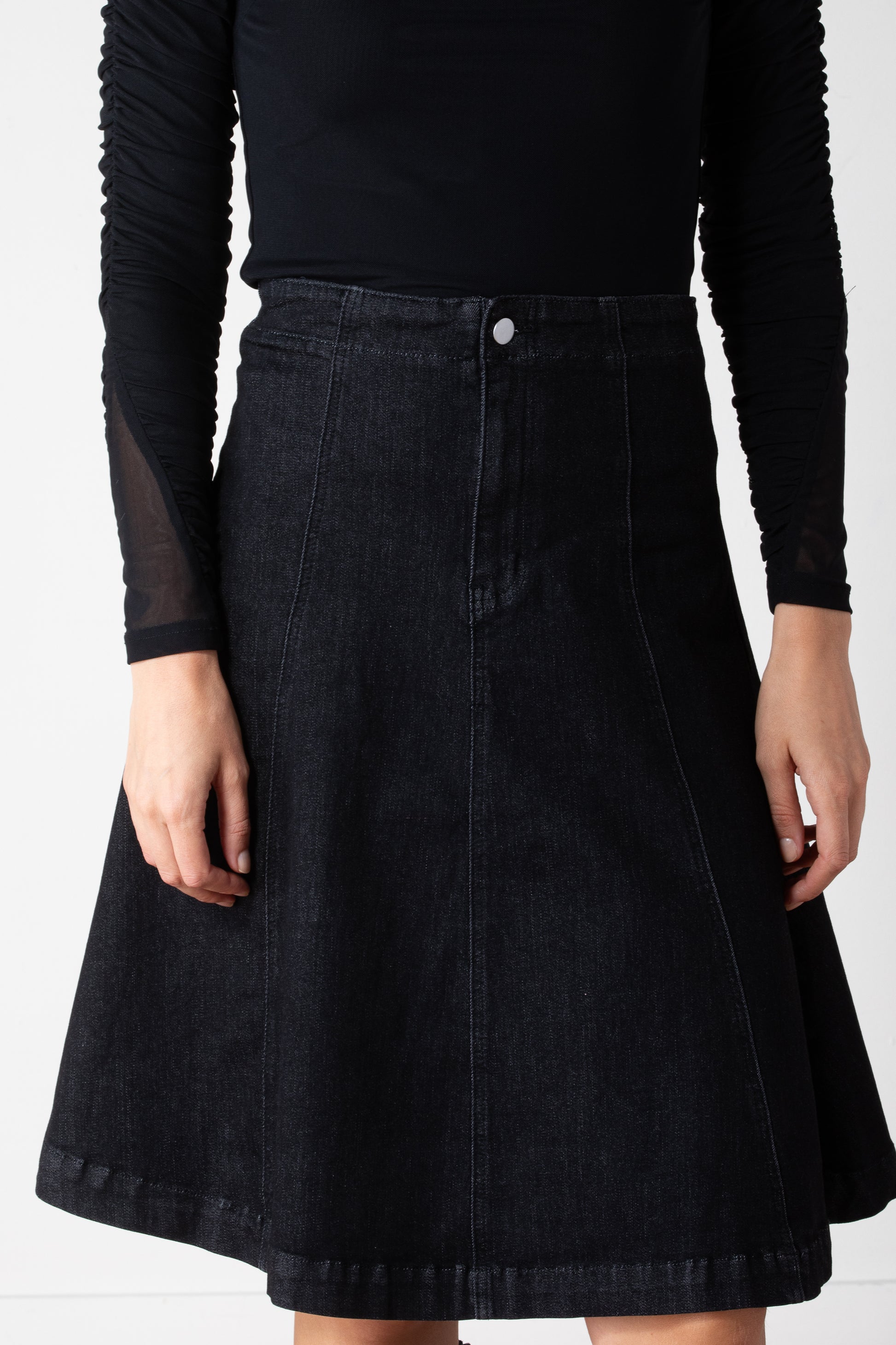 Clean, structured, and timeless — this black denim skirt is the staple you’ll build your wardrobe around. With a flattering A-line silhouette and rich, inky wash, it’s a polished take on classic denim that fits like a dream.