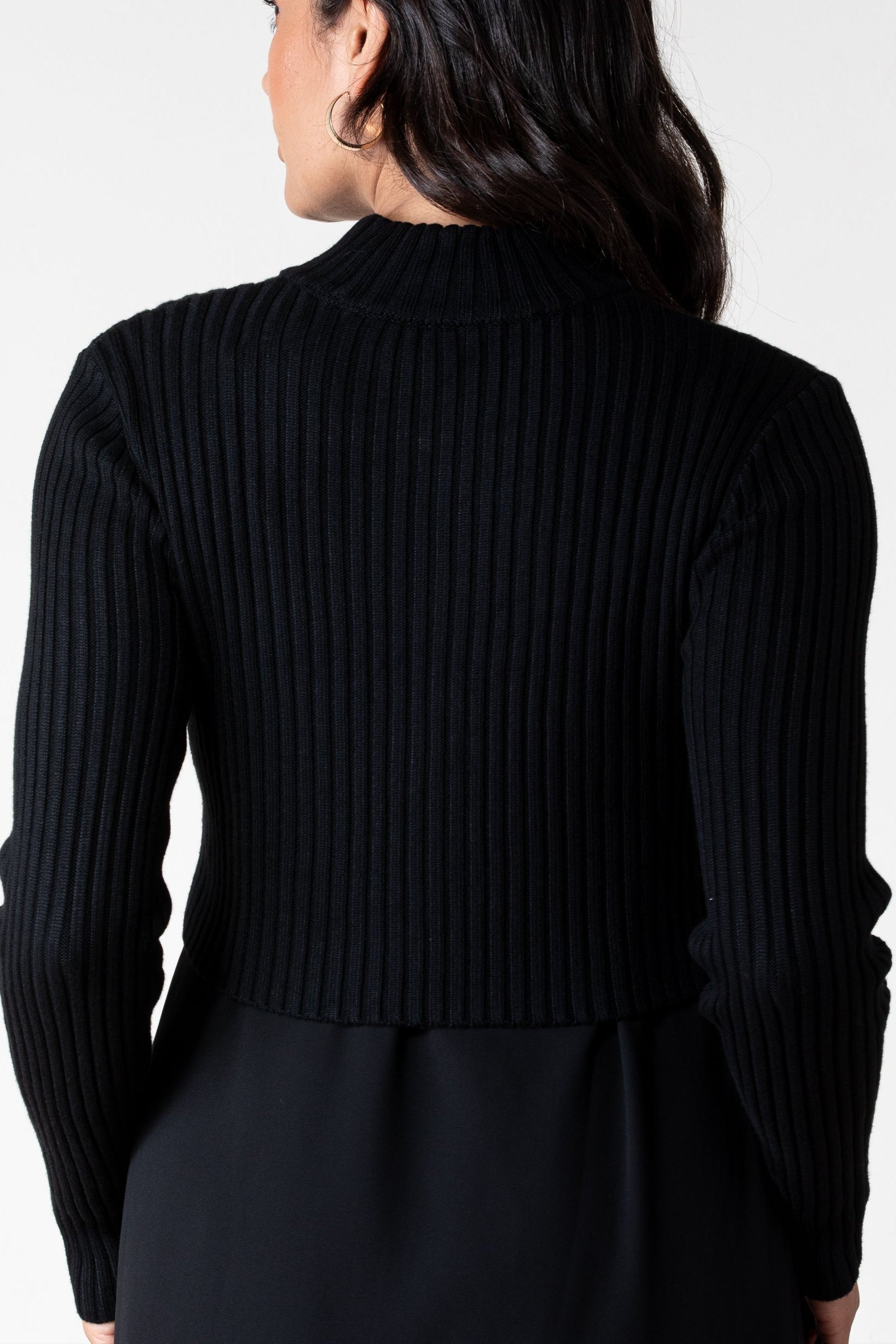 - Cropped silhouette — hits right at the waist.