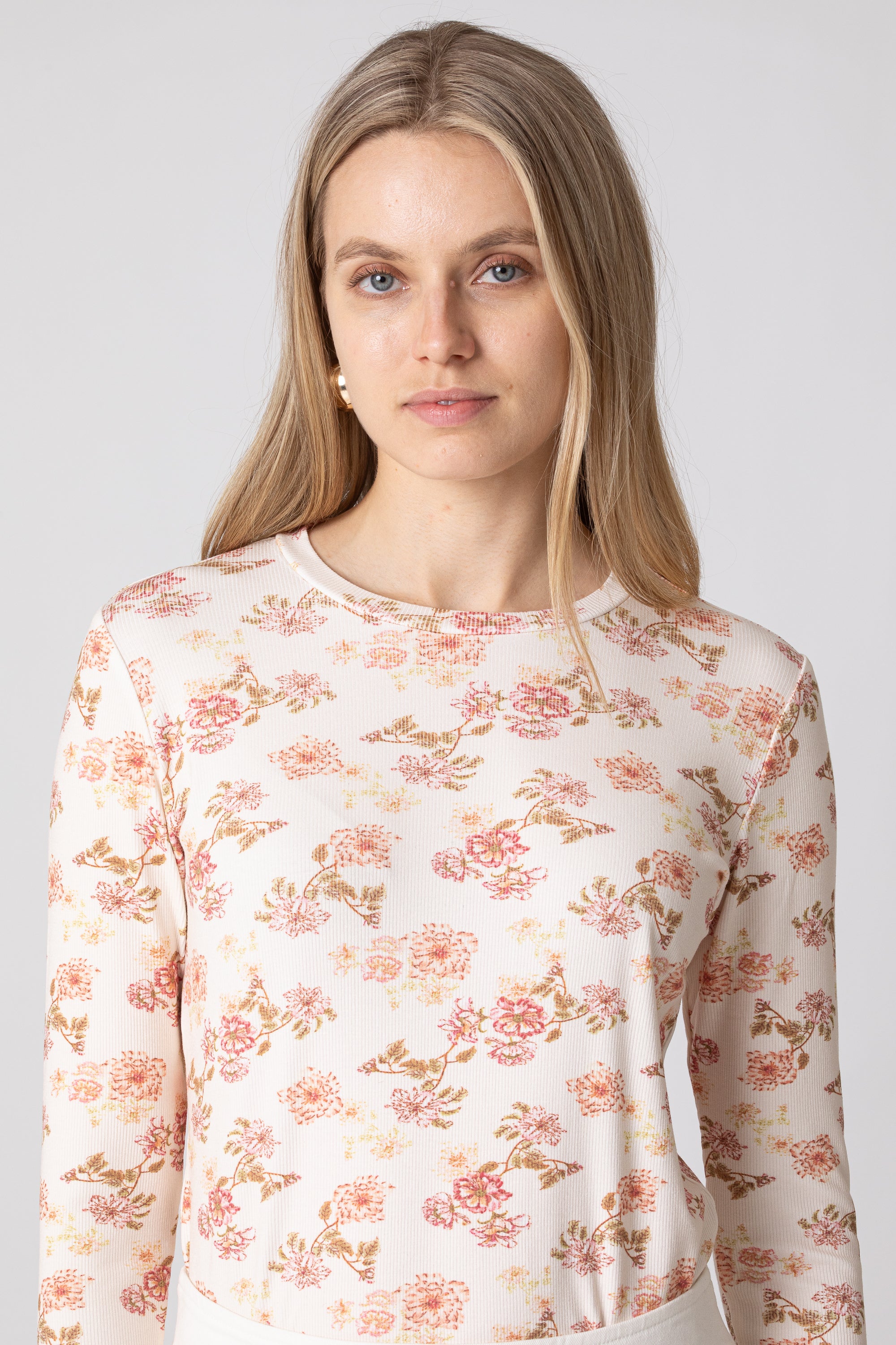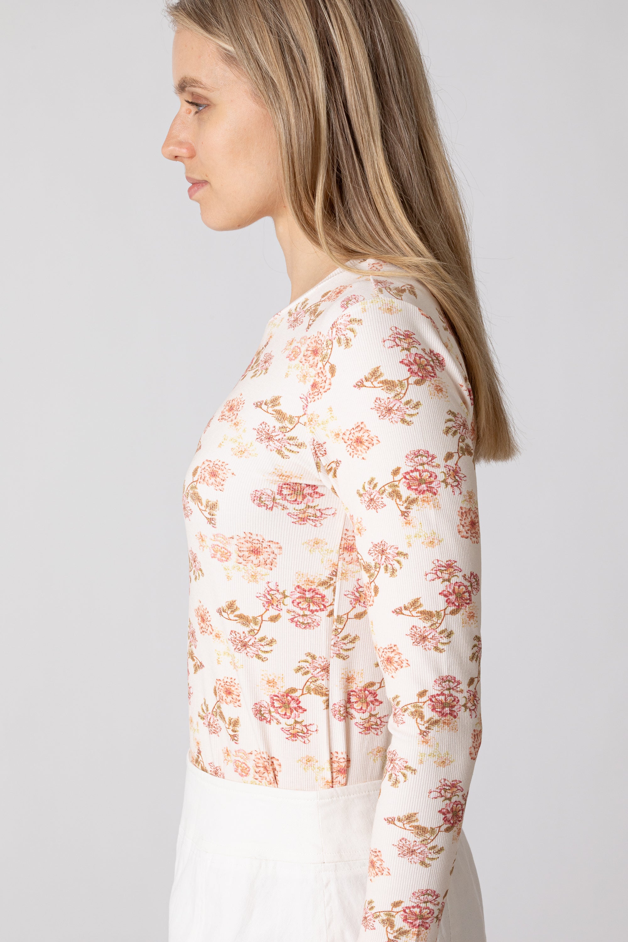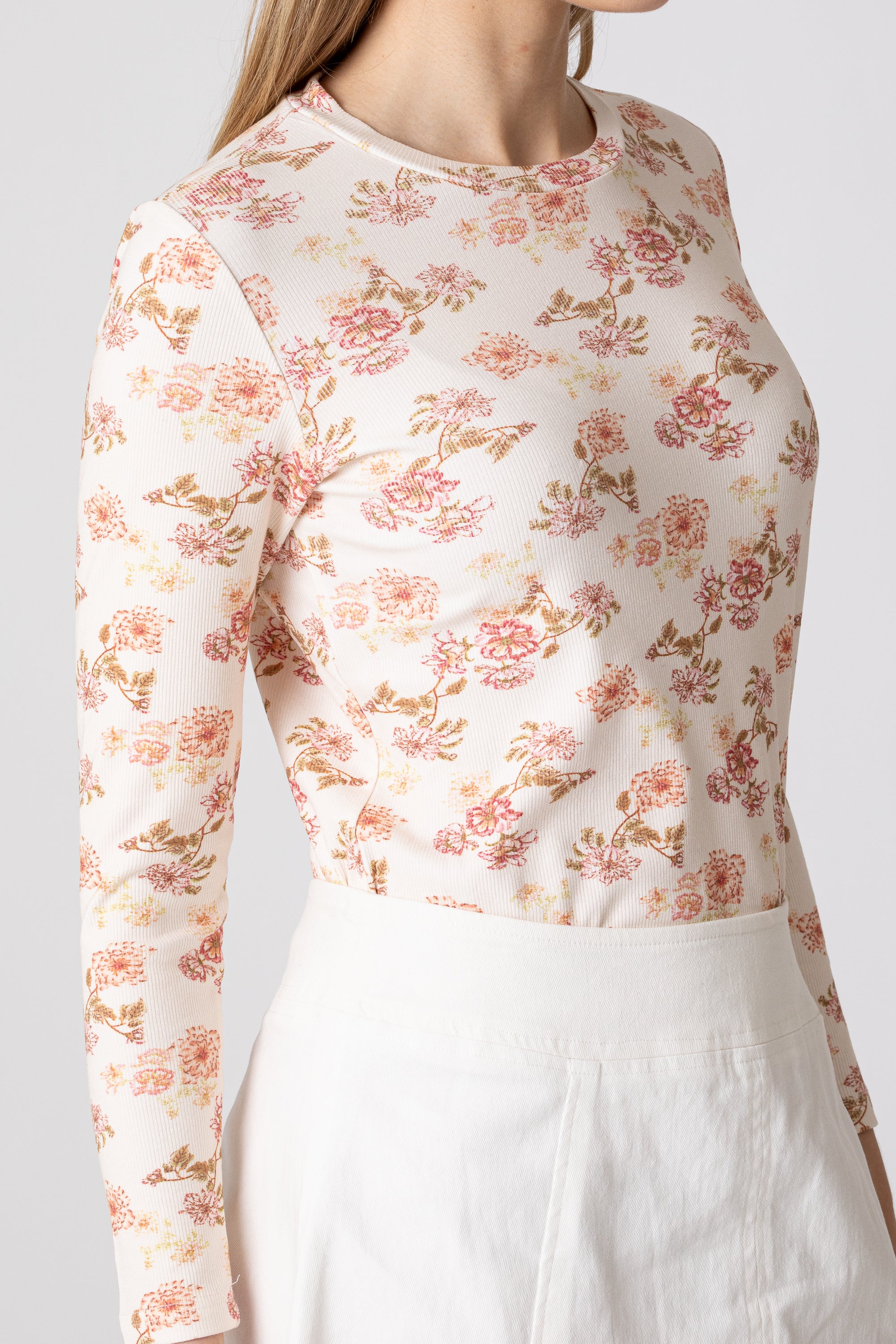 The Norma T-shirt is made from a super soft, ribbed material with a beautiful, feminine floral pattern. This elevated basic is perfect for styling in countless ways, making it an essential piece for your summer wardrobe.