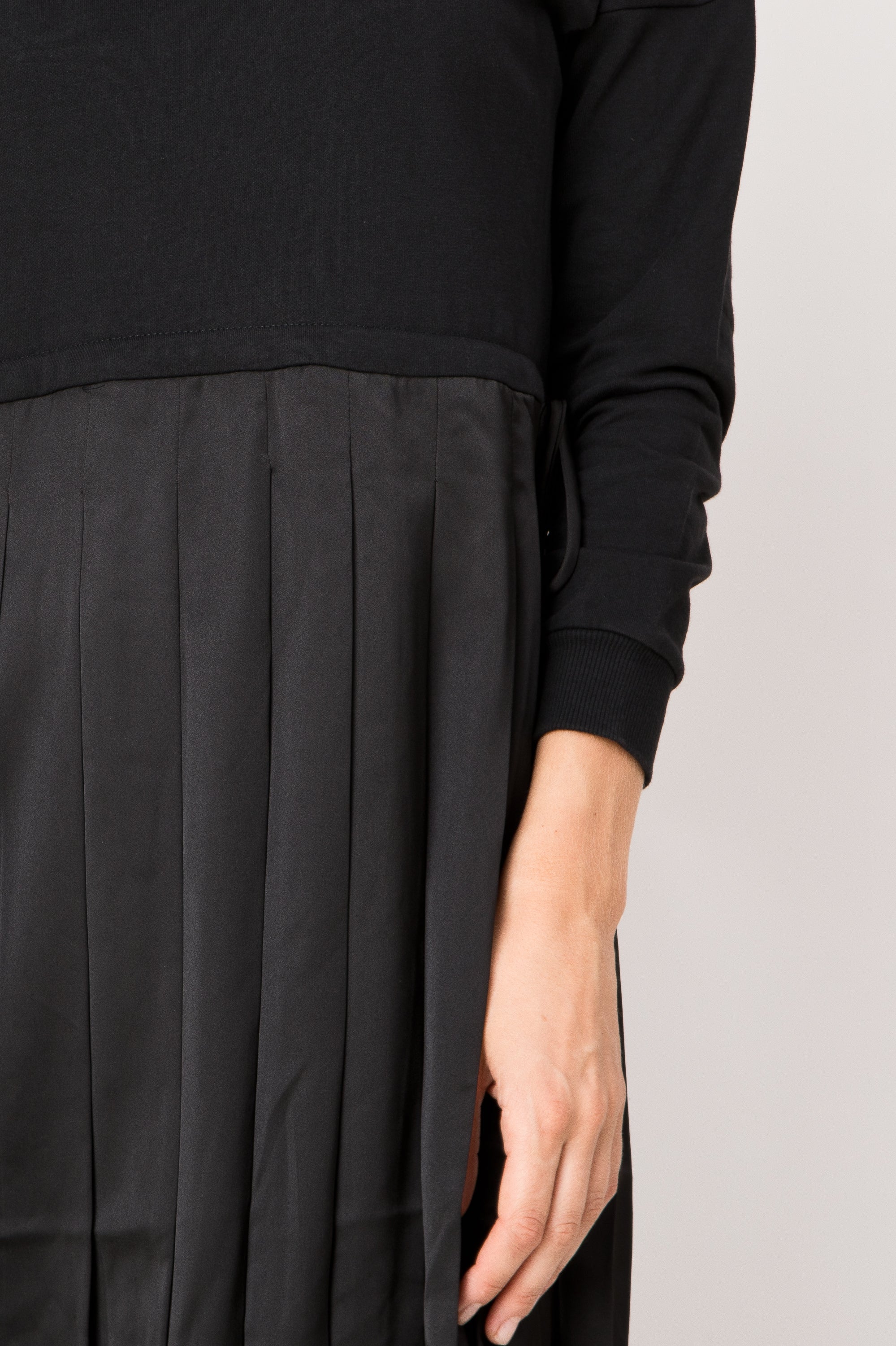 - Sweatshirt-style top combined with a slip-style pleated bottom