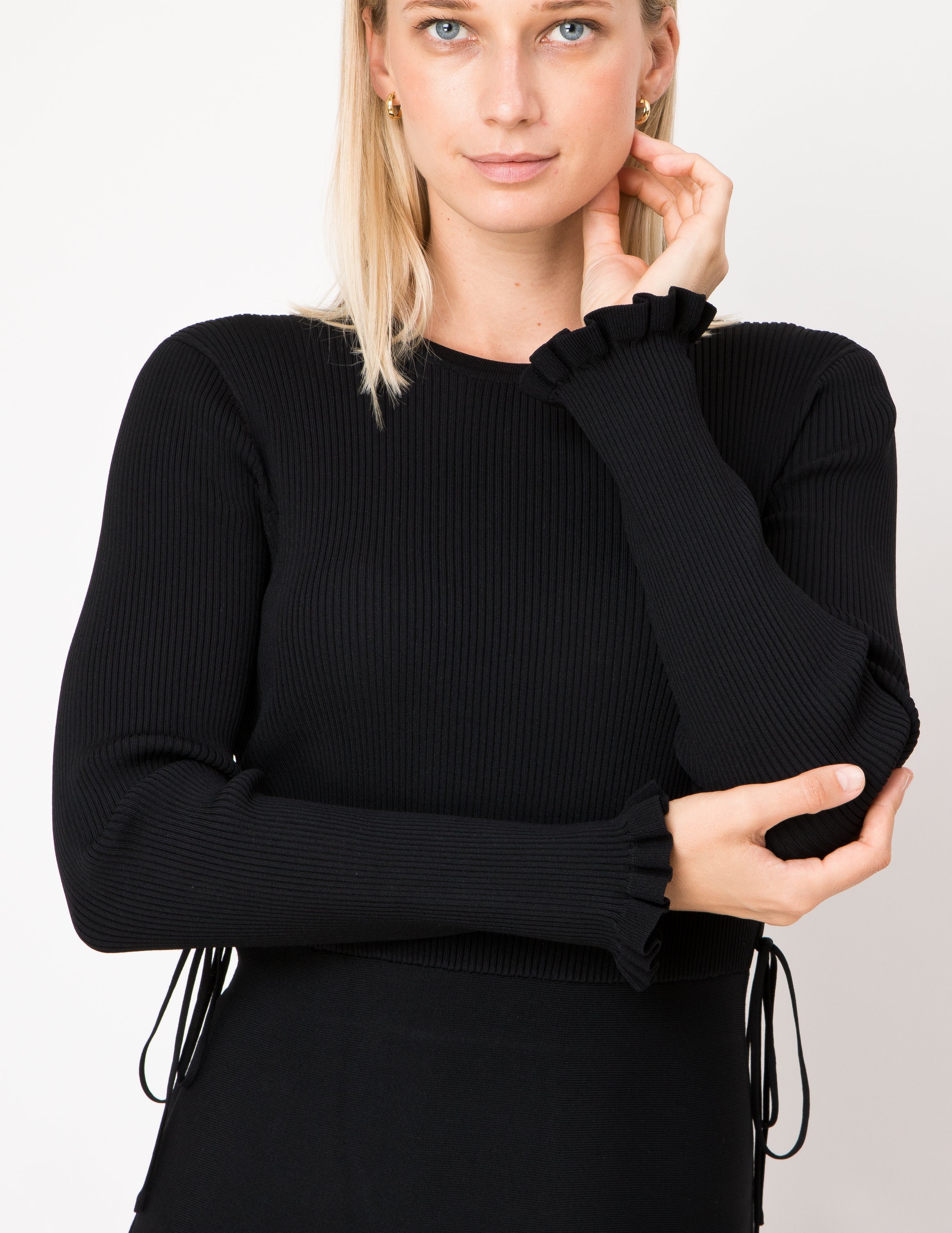 - Ruffle-edged sleeves for a feminine touch