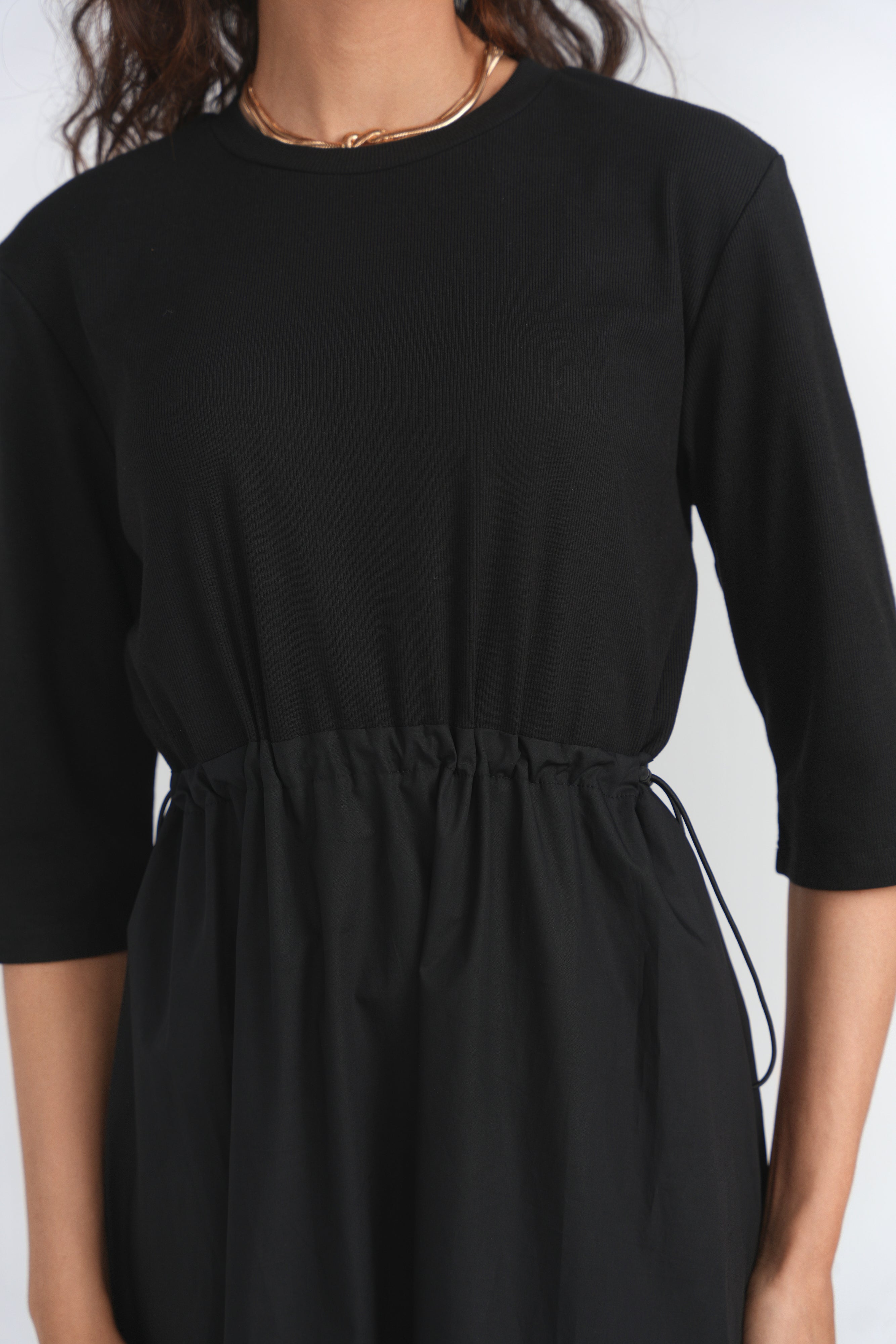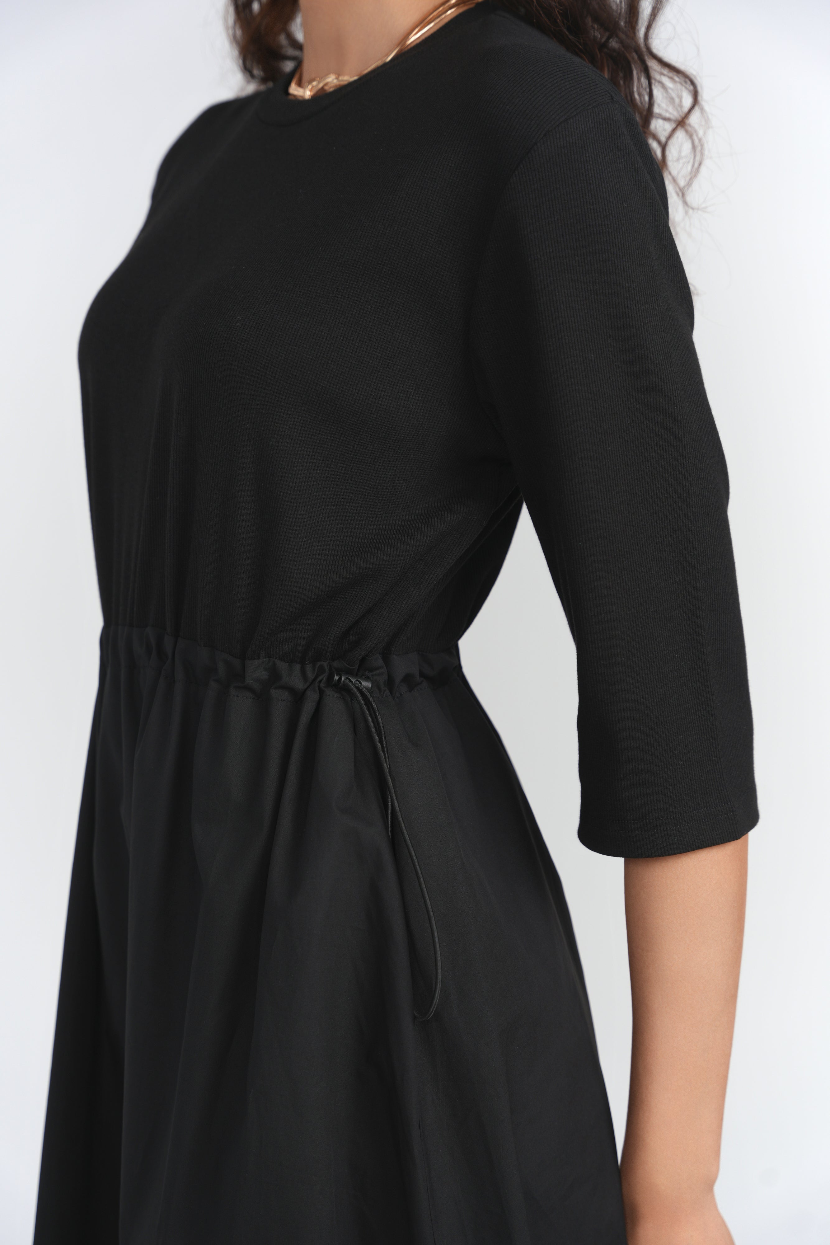 Effortless and versatile, this mixed-fabric dress is designed to move easily from day to night. With a comfortable ribbed bodice and a flowing cotton skirt, it’s the perfect throw-on-and-go piece that works just as well for casual chic as it does for a Friday night.